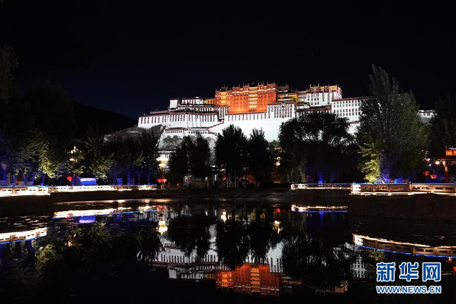 這是夜色中的布達拉宮(6月8日攝)。夜幕降臨,西藏拉薩布達拉宮燈光璀璨,夜景迷人。新華社記者詹彥攝