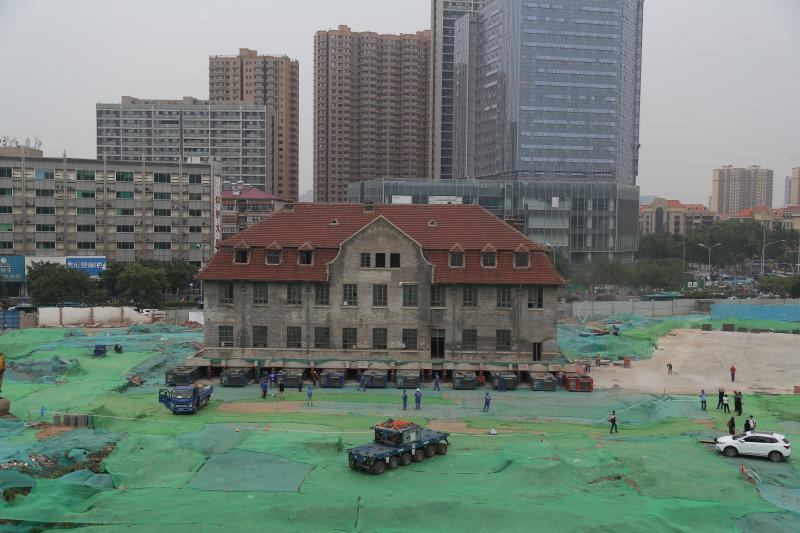 山東濟南2600噸百年修女樓坐“車”準備平移