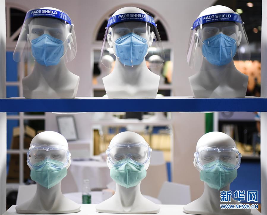 6月10日拍攝的展會(huì)上的口罩和防護(hù)罩產(chǎn)品。當(dāng)日,廣州國(guó)際防疫物資展覽會(huì)在保利世貿(mào)博覽館舉行。本次展會(huì)面積共計(jì)3.6萬(wàn)平方米,設(shè)有防疫產(chǎn)品、設(shè)備、綜合服務(wù)、原輔料等4個(gè)展區(qū),參展企業(yè)約600家。新華社記者鄧華攝