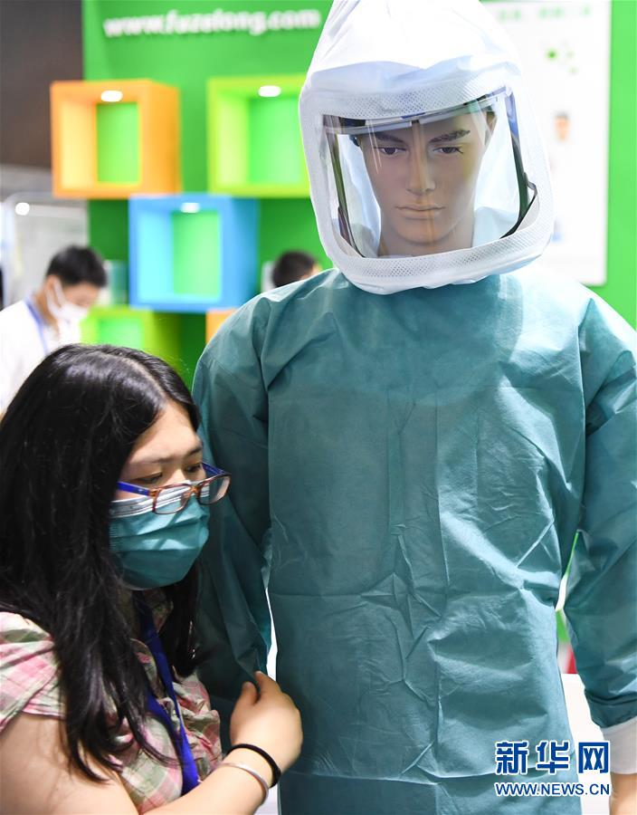 6月10日,參展工作人員在整理防護(hù)服產(chǎn)品。當(dāng)日,廣州國(guó)際防疫物資展覽會(huì)在保利世貿(mào)博覽館舉行。本次展會(huì)面積共計(jì)3.6萬(wàn)平方米,設(shè)有防疫產(chǎn)品、設(shè)備、綜合服務(wù)、原輔料等4個(gè)展區(qū),參展企業(yè)約600家。新華社記者鄧華攝