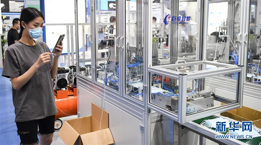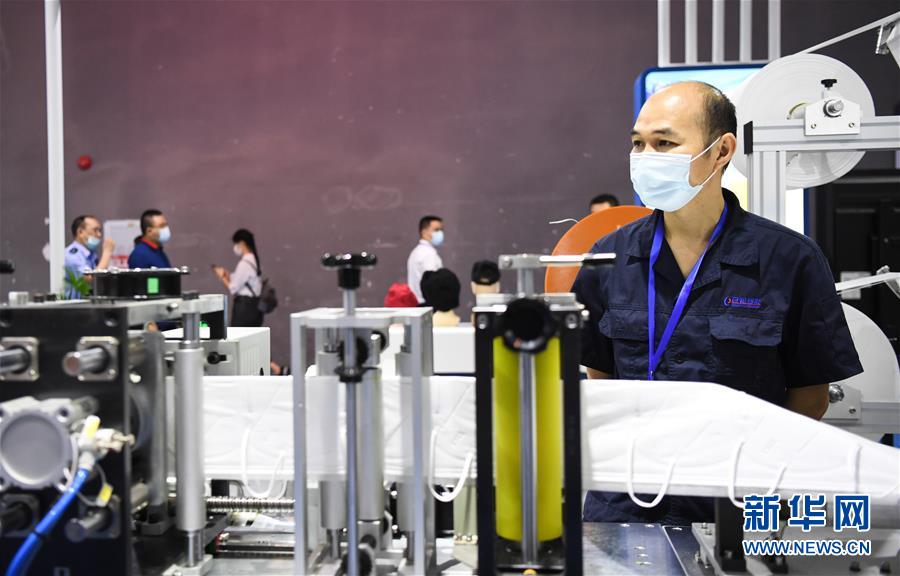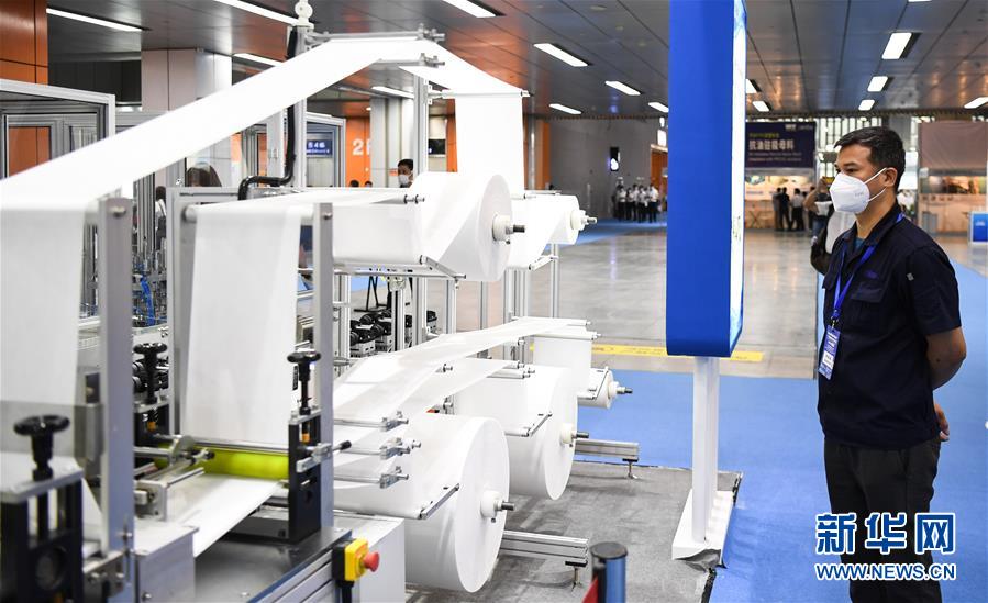 6月10日,觀眾參觀展會(huì)上的一臺(tái)口罩生產(chǎn)設(shè)備。當(dāng)日,廣州國(guó)際防疫物資展覽會(huì)在保利世貿(mào)博覽館舉行。本次展會(huì)面積共計(jì)3.6萬(wàn)平方米,設(shè)有防疫產(chǎn)品、設(shè)備、綜合服務(wù)、原輔料等4個(gè)展區(qū),參展企業(yè)約600家。新華社記者鄧華攝