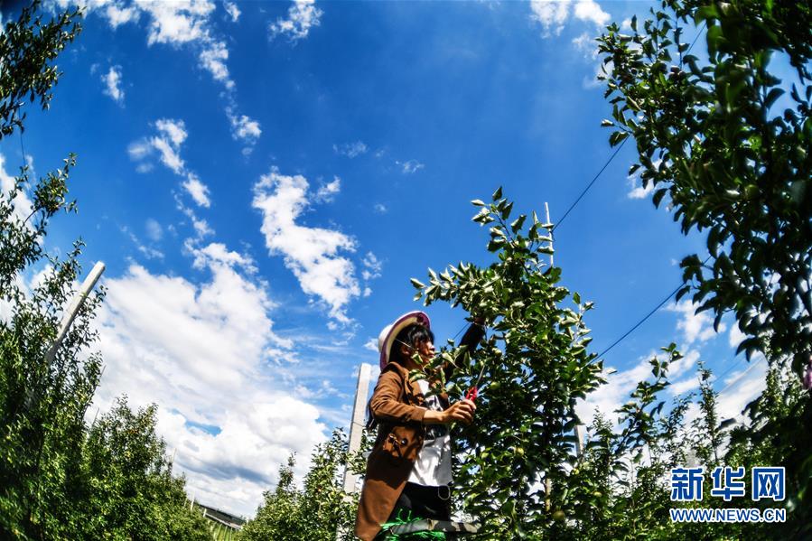 6月11日,農(nóng)民在貴州省威寧縣一處蘋果基地里疏果。近日,貴州省威寧彝族回族苗族自治縣的農(nóng)民搶抓農(nóng)時,對蘋果園進行疏果、除草等田間管理,呈現(xiàn)出一派夏管農(nóng)忙景象。威寧縣蘋果種植面積50余萬畝,蘋果產(chǎn)業(yè)已逐步成為當?shù)剞r(nóng)民增收致富的主導產(chǎn)業(yè)之一。新華社記者楊文斌攝。
