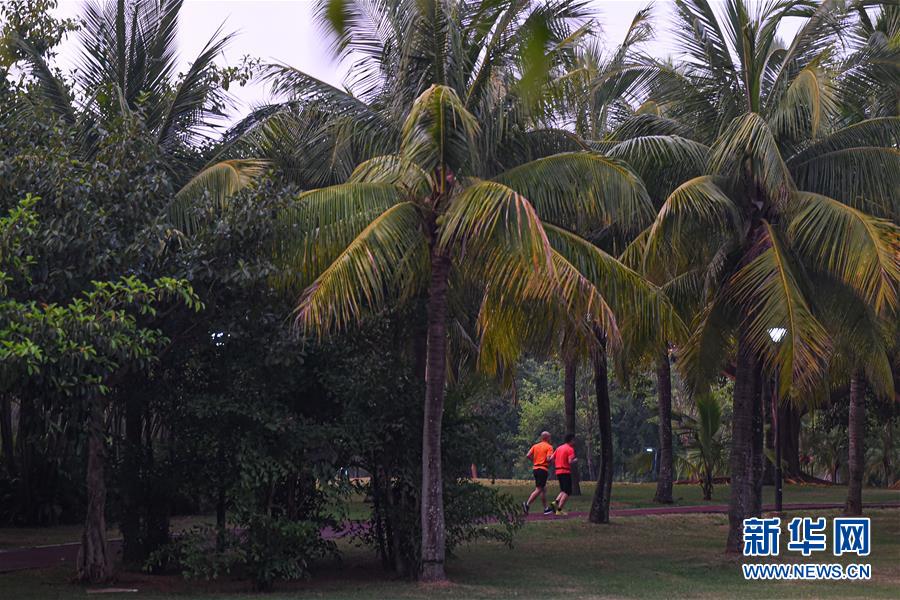 市民在??谌f(wàn)綠園夜跑(5月28日拍攝)。近年來(lái),夜跑成為越來(lái)越多都市人熱衷的健身方式之一。在海南??冢慨?dāng)夜幕降臨,“夜跑族”來(lái)到??谌f(wàn)綠園、世紀(jì)公園等夜跑場(chǎng)所跑步,用一身酣暢淋漓的汗水?dāng)[脫白天工作中的壓力,享受跑步帶來(lái)的歡愉。新華社記者 蒲曉旭 攝