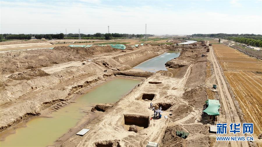 這是6月14日拍攝的山東小清河章丘段考古發(fā)掘現(xiàn)場(無人機(jī)照片)。近日,濟(jì)南市考古研究所考古工作隊(duì)在對小清河章丘段進(jìn)行考古調(diào)查和勘探時(shí),發(fā)現(xiàn)了13座年代集中在北朝末期至唐朝初期的古墓。新華社記者 王凱 攝