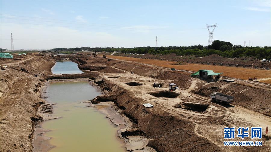 這是6月14日拍攝的山東小清河章丘段考古發(fā)掘現(xiàn)場(chǎng)。近日,濟(jì)南市考古研究所考古工作隊(duì)在對(duì)小清河章丘段進(jìn)行考古調(diào)查和勘探時(shí),發(fā)現(xiàn)了13座年代集中在北朝末期至唐朝初期的古墓。新華社記者 王凱 攝
