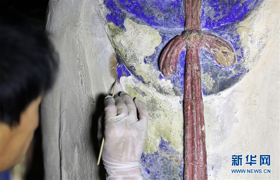 6月8日,工作人員對(duì)奉國(guó)寺的彩繪泥塑進(jìn)行保護(hù)修復(fù)。新華社記者 姚劍鋒 攝