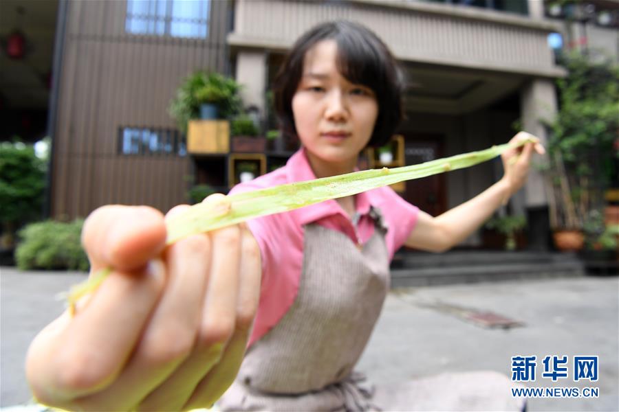 6月12日,在重慶榮昌的天運夏布會館,非遺傳承人馬琳沁在對夏布原料苧麻進行剝麻處理。