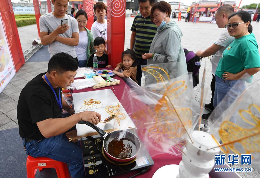 6月13日,非遺傳承人在非遺大集上制作糖畫(huà)。新華社記者 季春鵬 攝