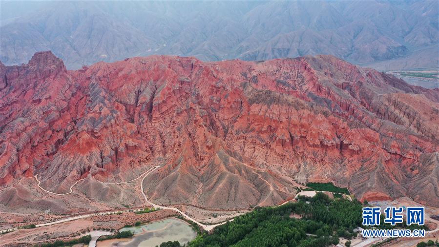 這是6月15日拍攝的位于貴德縣境內(nèi)的丹霞地貌(無人機(jī)照片)。夏日時(shí)節(jié),位于青海省海南藏族自治州的貴德縣迎來連日降雨,多彩的丹霞地貌在雨后色澤愈發(fā)鮮艷,在云霧的籠罩下形成一幅幅獨(dú)特畫卷。新華社記者 吳剛 攝