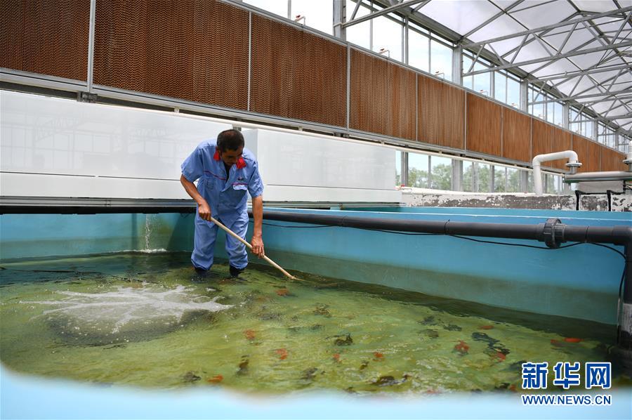 在天津現(xiàn)代晨輝科技集團(tuán)有限公司的養(yǎng)殖示范場(chǎng),工人在清潔魚池(6月15日攝)。新華社記者 李然 攝