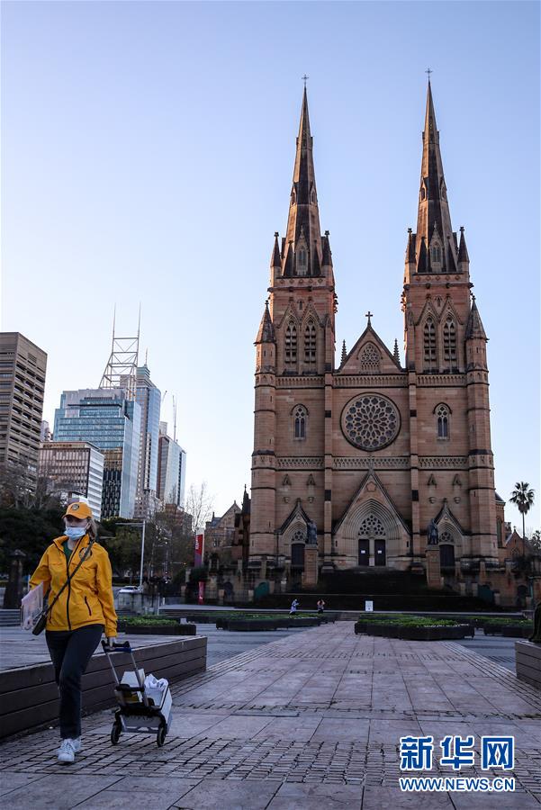 6月16日,市民從澳大利亞悉尼的圣瑪麗大教堂前走過。