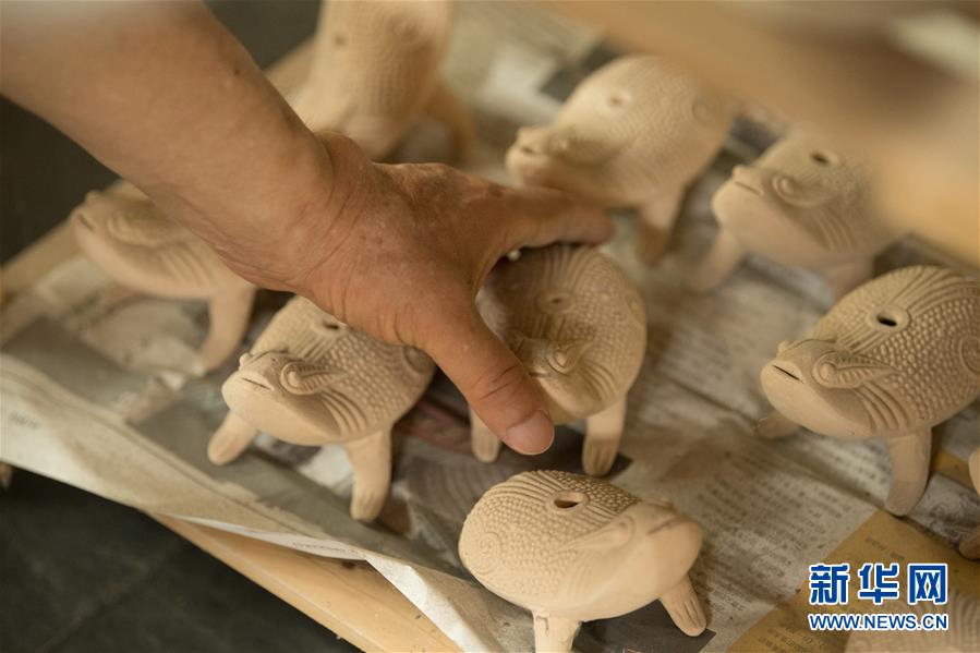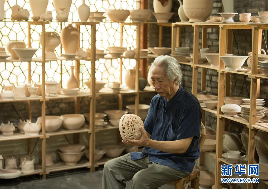 6月17日,在位于浙江慈溪的工作室,聞長慶查看一件素?zé)蟮捏蛤艹幍巍P氯A社記者 翁忻旸 攝