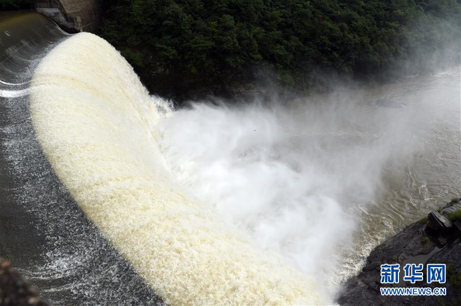 6月16日,位于安徽省金寨縣的流波水庫(kù)在進(jìn)行泄洪。新華社記者 周牧 攝