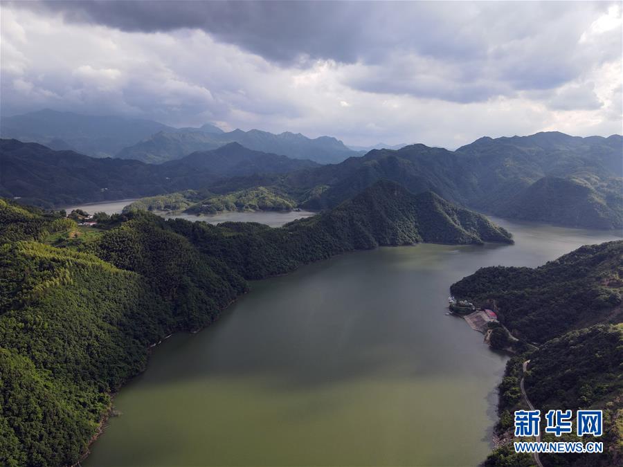 這是6月17日拍攝的位于安徽省霍山縣的白蓮崖水庫(kù)(無(wú)人機(jī)照片)。新華社記者 周牧 攝