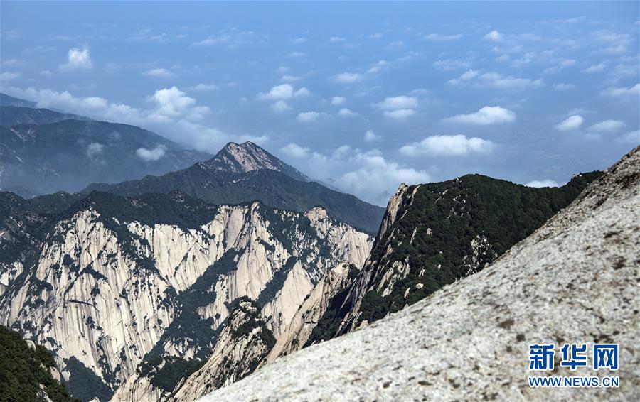 6月18日,白云飄動下的華山。當(dāng)日,西岳華山經(jīng)歷連續(xù)三天暴雨后,迎來燦爛的陽光。新華社記者 陶明 攝