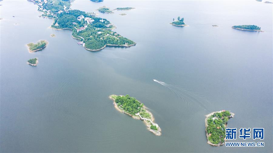 6月21日拍攝的紅楓湖景區(qū)風(fēng)光(無(wú)人機(jī)照片)。夏至?xí)r節(jié),貴州省清鎮(zhèn)市紅楓湖景區(qū)草木蒼翠,秀麗的湖光山色吸引不少游客前來(lái)游玩。新華社記者陶亮攝