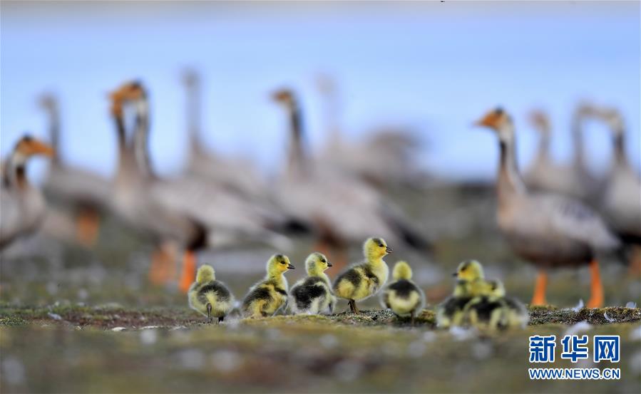6月9日拍攝的西藏安多縣境內(nèi)嘎龍湖鳥島上的斑頭雁雛鳥。夏季的藏北高原氣候涼爽,生機(jī)盎然。經(jīng)過(guò)一個(gè)冬季在藏南的生活,斑頭雁、紅嘴鷗、黑頸鶴等紛紛遷徙至藏北深處的西藏安多縣嘎龍湖鳥島,在此棲息、產(chǎn)蛋、孵蛋。新華社記者覺果攝