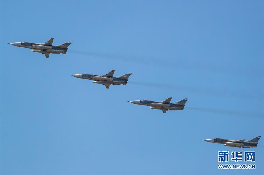 6月20日,在俄羅斯首都莫斯科,蘇-24M戰(zhàn)斗轟炸機(jī)編隊(duì)參加閱兵式彩排。俄羅斯將于6月24日舉行紀(jì)念衛(wèi)國(guó)戰(zhàn)爭(zhēng)勝利75周年閱兵式。新華社記者白雪騏攝
