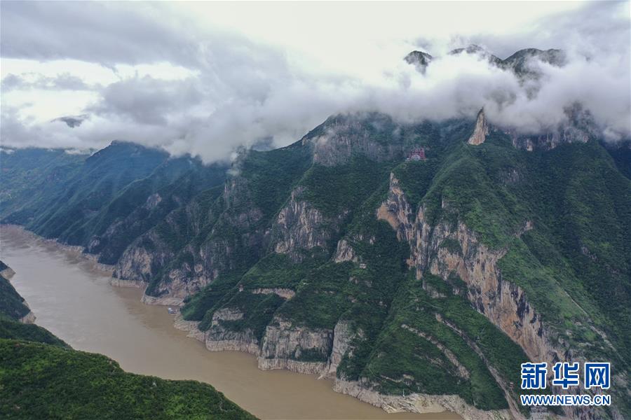 這是6月21日在重慶市巫山縣拍攝的雨后巫峽,兩岸碧山如畫,云霧繚繞在其間(無人機(jī)照片)。新華社記者黃偉攝