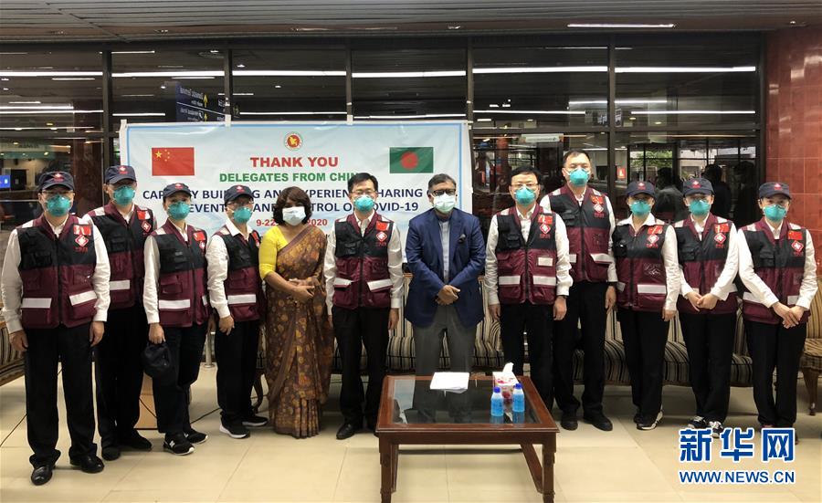 6月22日,孟加拉國衛(wèi)生和家庭福利部部長馬利克(右六)等在首都達卡舉行的送行儀式上與中方專家組合影留念。中國赴孟加拉國抗疫醫(yī)療專家組圓滿完成任務(wù),于22日乘機返回祖國。孟加拉國衛(wèi)生和家庭福利部部長馬利克對疫情發(fā)生以來中國給予孟加拉國的大力支持表示感謝。新華社記者劉春濤攝