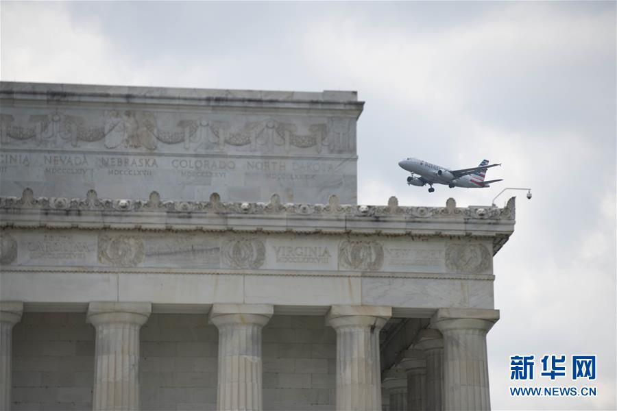 6月22日,在美國首都華盛頓,一架飛機(jī)從林肯紀(jì)念堂上空飛過。美國約翰斯·霍普金斯大學(xué)22日發(fā)布的新冠疫情最新統(tǒng)計數(shù)據(jù)顯示,美國累計死亡病例超過12萬例。新華社記者劉杰攝