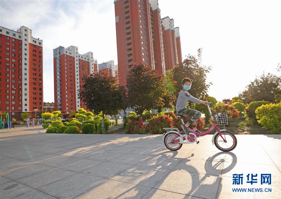 一名小朋友在遼寧省遼陽(yáng)市遼陽(yáng)縣劉二堡鎮(zhèn)前杜村居民小區(qū)內(nèi)騎自行車玩耍(6月1日攝)。新華社記者楊青攝