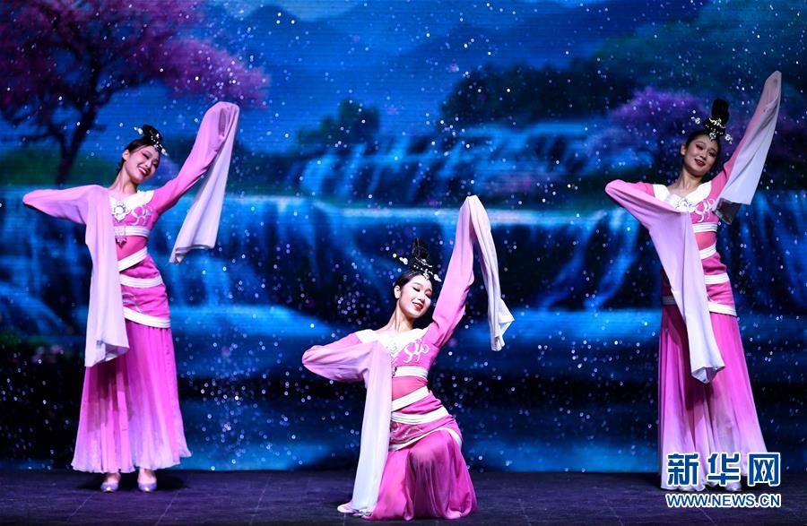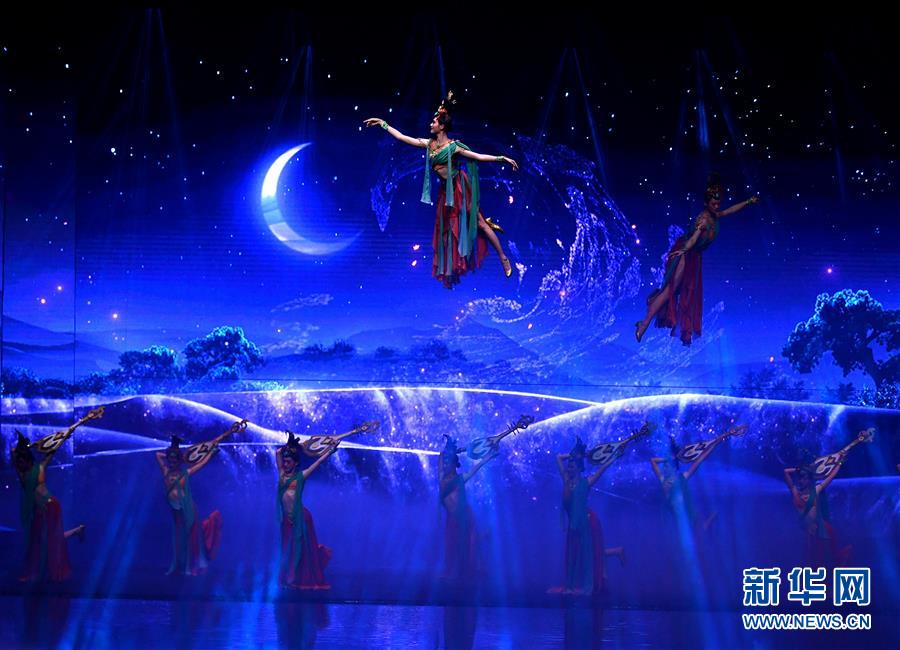 6月22日拍攝的《西安千古情》演出現(xiàn)場。大型舞臺劇《西安千古情》22日在西安浐灞世博園首演。該劇以一位華裔少女歸國尋根為故事主線,濃縮展現(xiàn)了古城西安的悠久歷史文化。新華社記者張博文攝