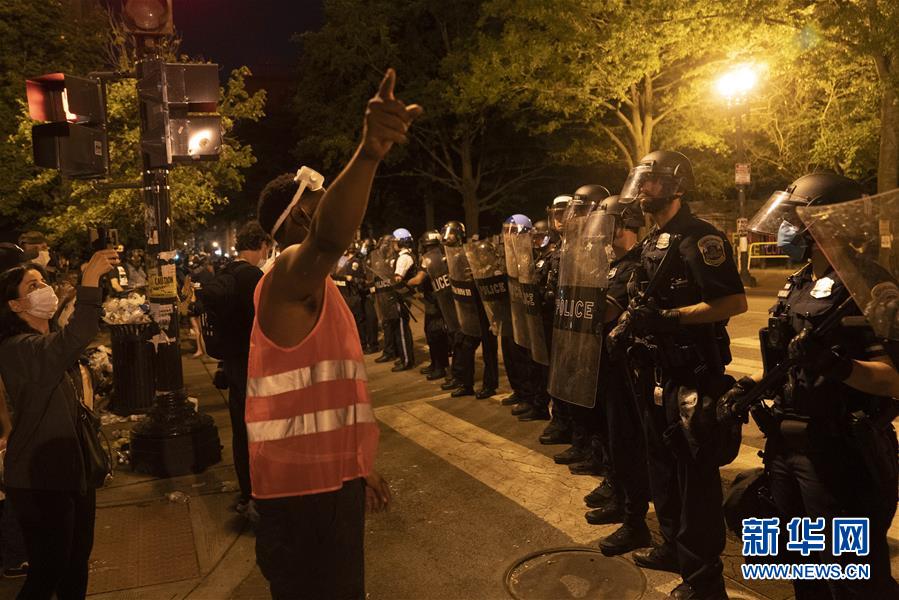 美國(guó)白宮外警察和示威者發(fā)生沖突和對(duì)峙