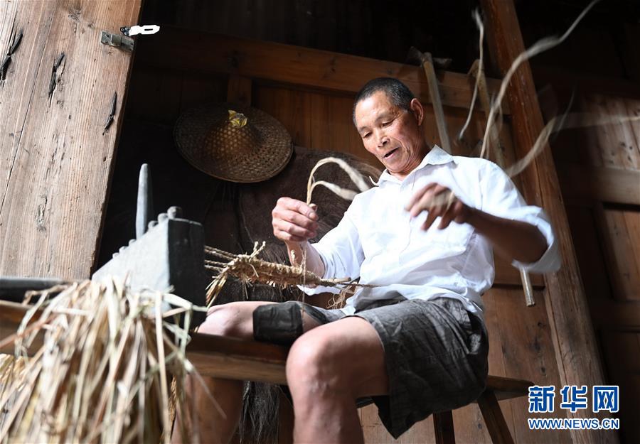 6月24日,福建政和縣外屯鄉(xiāng)湖屯村村民展示民間編草鞋手藝。當(dāng)日,福建省政和縣舉行第三屆中國·屯福橋端午民俗文化節(jié)。端午節(jié)臨近,各地舉行包粽子、做香包、賽龍舟等豐富多彩的民俗文化活動(dòng),迎接傳統(tǒng)佳節(jié)的到來。新華社記者林善傳攝