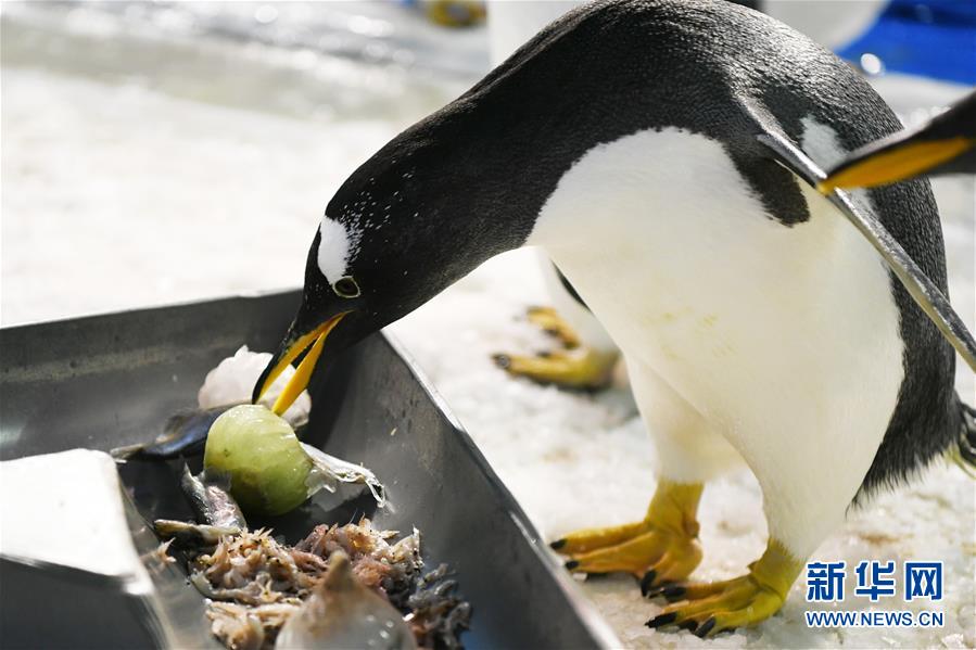 6月24日,哈爾濱極地館的企鵝在品嘗“魚(yú)粽”。當(dāng)日,哈爾濱極地館的工作人員特地準(zhǔn)備了“魚(yú)粽”“肉粽”,讓生活在這里的極地動(dòng)物也品嘗一下端午美食。新華社記者王建威攝