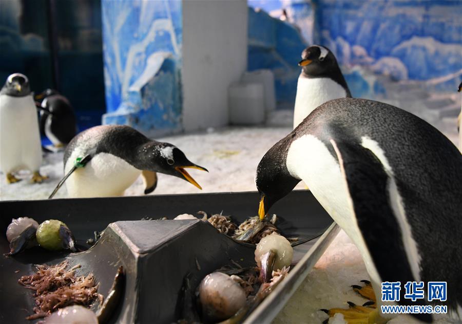 6月24日,哈爾濱極地館的企鵝在品嘗“魚粽”。當(dāng)日,哈爾濱極地館的工作人員特地準(zhǔn)備了“魚粽”“肉粽”,讓生活在這里的極地動(dòng)物也品嘗一下端午美食。新華社記者王建威攝