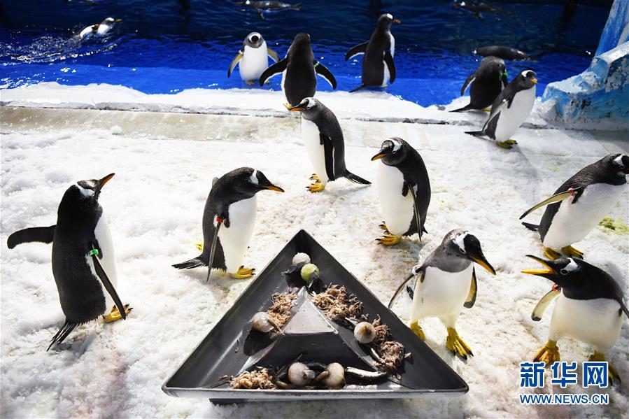 6月24日,在哈爾濱極地館企鵝生活區(qū),企鵝準備品嘗“魚粽”。當日,哈爾濱極地館的工作人員特地準備了“魚粽”“肉粽”,讓生活在這里的極地動物也品嘗一下端午美食。新華社記者王建威攝