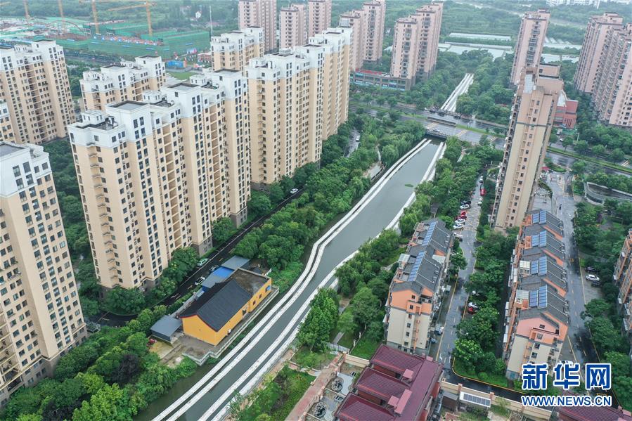 6月29日在吳興區(qū)湖東街道拍攝的“水上稻田”(無人機照片)。今年以來,浙江湖州吳興區(qū)湖東街道開始在轄區(qū)河道大規(guī)模推廣“水上稻田”新型農(nóng)業(yè)項目,利用浮島進行特種水稻種植,既能凈化水體,又能產(chǎn)出生態(tài)稻谷。“水上稻田”預(yù)計在11月實現(xiàn)收割。新華社記者翁忻旸攝