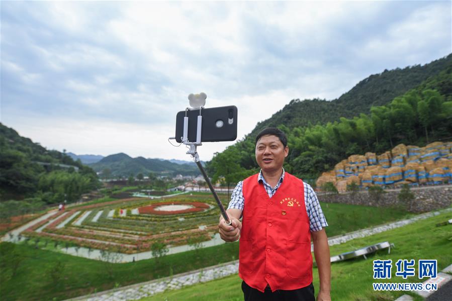 6月29日,新登鎮(zhèn)上山村黨總支書記汪衛(wèi)中通過手機(jī)直播推介當(dāng)?shù)剜l(xiāng)村旅游景點(diǎn)。近日,浙江省杭州市富陽區(qū)新登鎮(zhèn)來自不同領(lǐng)域、有著不同身份的基層黨員們紛紛化身網(wǎng)絡(luò)“主播”,借助抖音、朋友圈等網(wǎng)絡(luò)載體,傾情推介家鄉(xiāng)的山鄉(xiāng)風(fēng)貌、山鄉(xiāng)味道、山鄉(xiāng)民俗、山鄉(xiāng)風(fēng)情。新華社記者徐昱攝