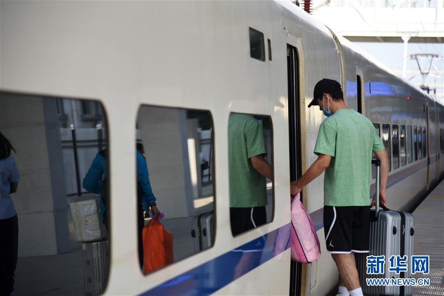 7月1日,旅客在山東章丘站上車。當(dāng)日,2020年全國(guó)鐵路暑運(yùn)拉開(kāi)帷幕。新華社記者王凱攝
