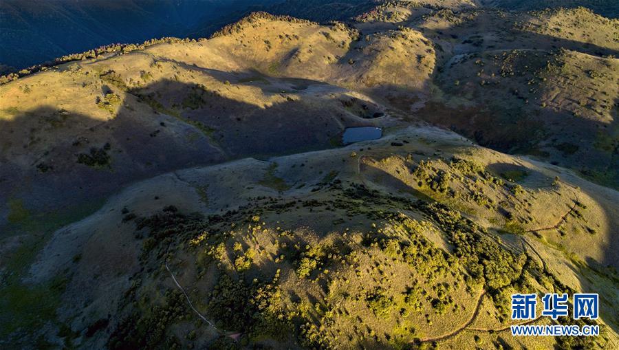 6月30日,朝霞照耀下的神田草甸與遠(yuǎn)處的群峰(無人機(jī)照片)。位于陜西省安康市嵐皋縣與重慶市城口縣交界處大巴山神田主脊北坡的神田草甸,面積超過1.1萬畝。夏日的朝霞中,起伏的草甸仿佛一塊寬大無邊的綠色地毯,鑲嵌在大巴山上,如詩如畫。新華社記者陶明攝