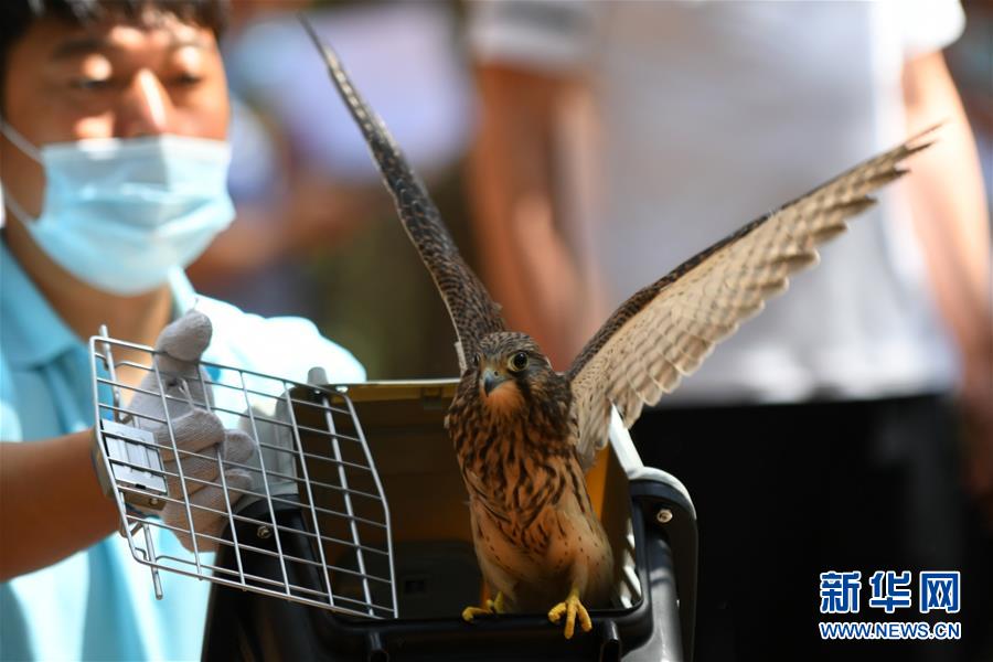 這是7月1日在放飛活動(dòng)上拍攝的一只紅隼。新華社記者林宏攝