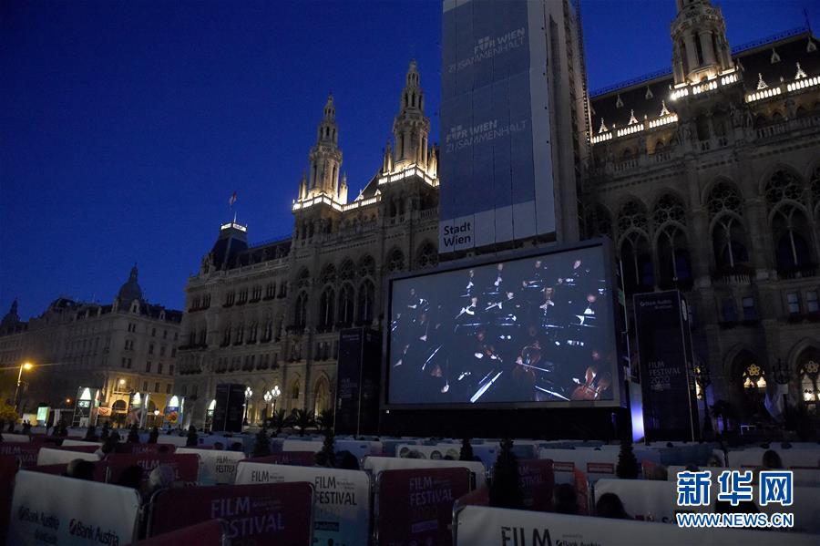 7月4日晚,2020維也納電影節(jié)在奧地利首都維也納市政廳廣場(chǎng)開(kāi)幕。今年,該電影節(jié)為了做好防疫措施,將內(nèi)場(chǎng)區(qū)域劃分為一個(gè)個(gè)獨(dú)立的小區(qū)域,以便讓市民們保持距離。維也納電影節(jié)迄今舉辦30屆,是維也納夏季重要的文化活動(dòng)之一,該電影節(jié)主要以放映歌劇、音樂(lè)劇、音樂(lè)會(huì)電影為主。新華社記者郭晨攝