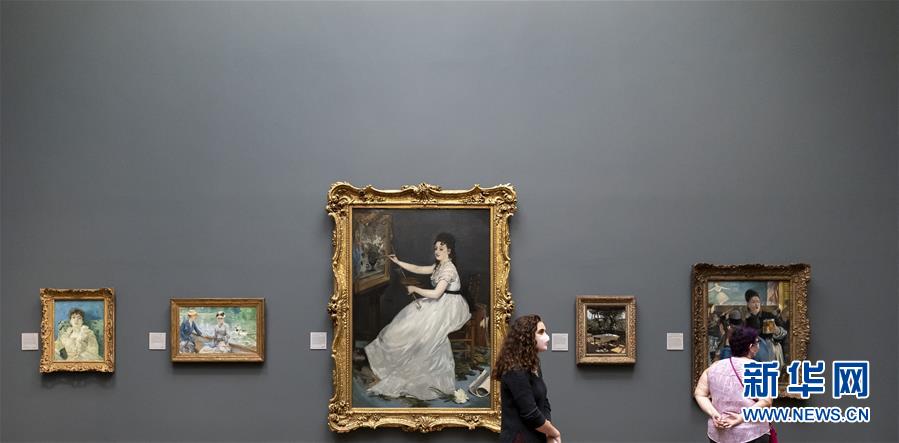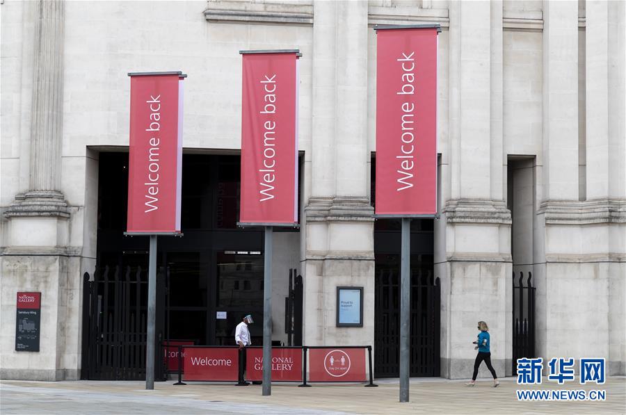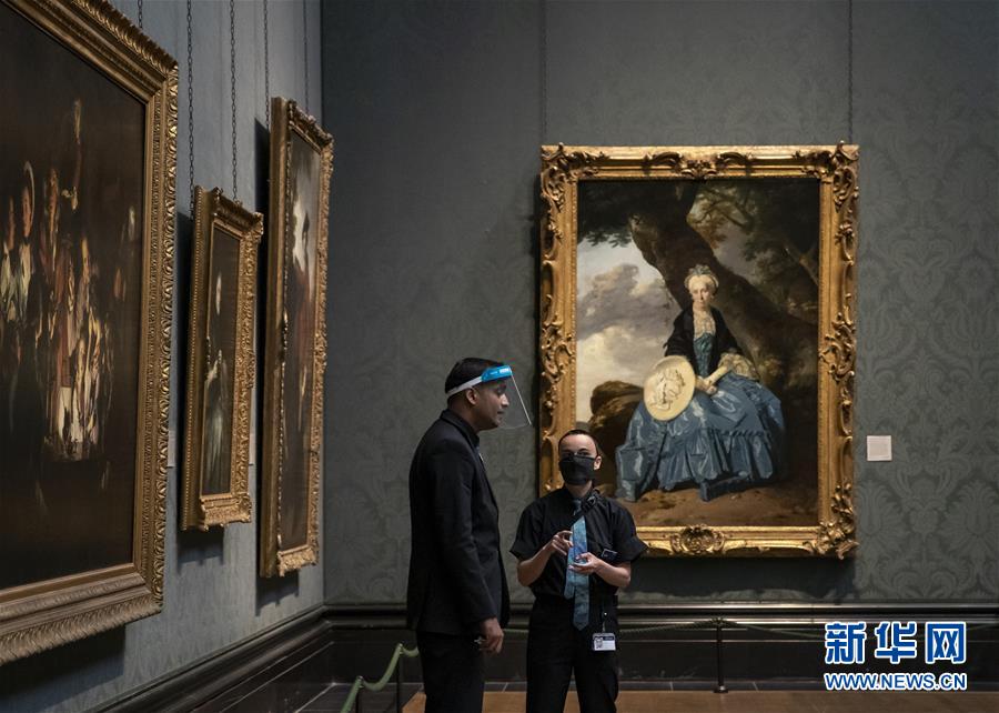 7月4日,參觀者佩戴口罩在英國國家美術館的媒體開放日上參觀。新華社記者韓巖攝