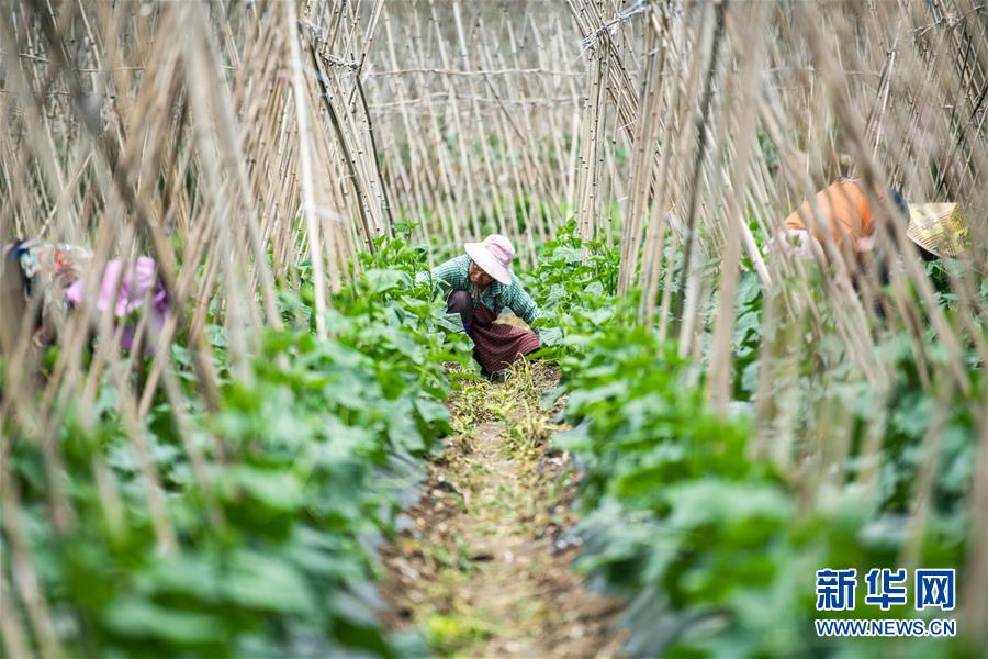 7月6日,貴州省六枝特區(qū)郎岱鎮(zhèn)青龍村村民在田地里勞作。當(dāng)日是小暑節(jié)氣,貴州省各地農(nóng)民不誤農(nóng)時(shí),忙碌在田間地頭。新華社記者陶亮攝
