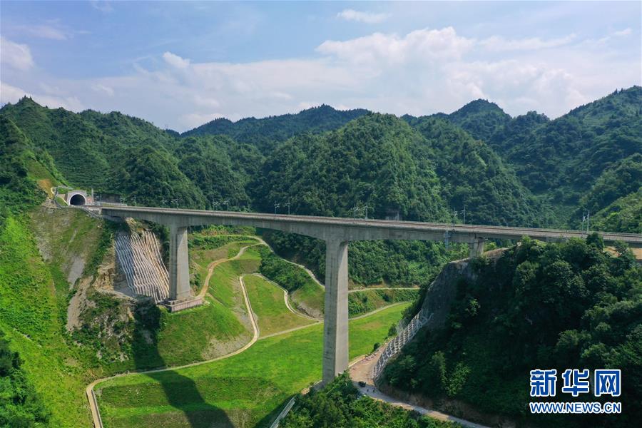 7月6日拍攝的安六鐵路彭家沖一號大橋(無人機照片)。當日,新建貴州安六鐵路(安順至六盤水)聯(lián)調(diào)聯(lián)試工作進入收尾階段,開通前的各項準備工作已基本就緒。安六鐵路線路全長約125公里,設(shè)計時速250公里,為國家I級雙線客運專線。建成投用后,貴陽至六盤水的鐵路旅行時間可從現(xiàn)在的3.5小時縮短為1小時左右,貴州省六盤水市將全面接入全國高鐵網(wǎng)。新華社記者劉續(xù)攝