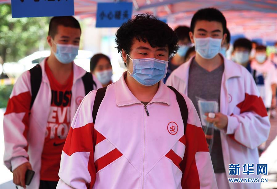 7月7日,在山西省太原市第五中學(xué)??键c(diǎn),結(jié)束首場(chǎng)科目考試的考生走出考場(chǎng)。當(dāng)日,2020年高考拉開帷幕。新華社記者楊晨光攝