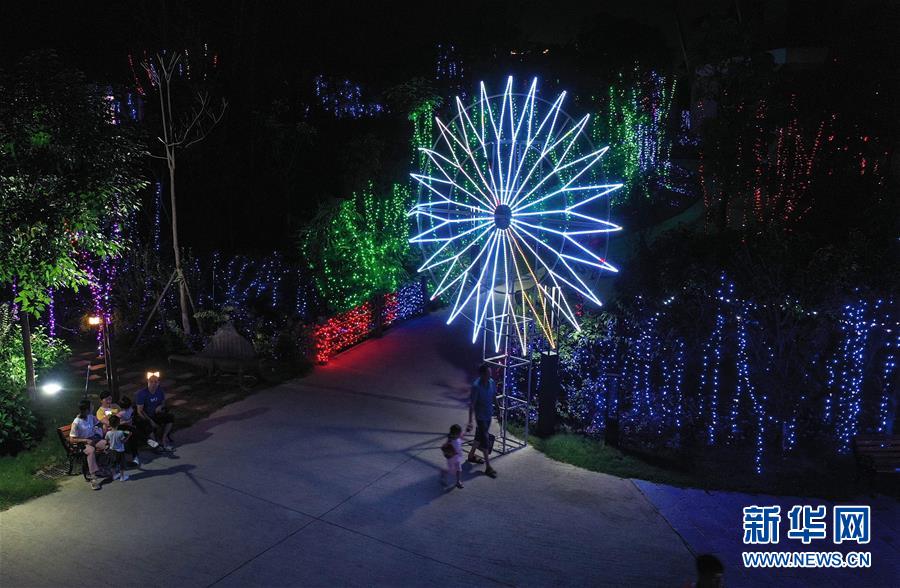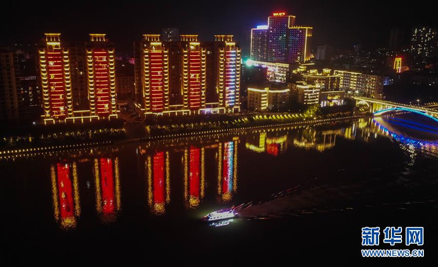 這是融安縣城一處夜景(7月7日攝,無人機(jī)照片)。夏夜的廣西融安縣城燈火璀璨,景色迷人。新華社記者張愛林?jǐn)z
