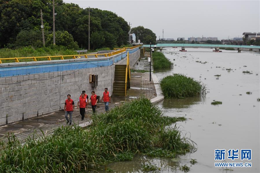 7月7日,吳興高新區(qū)幻溇村黨員志愿者在巡查河道。近日,位于浙江北部的湖州市遭遇多輪降雨,東部平原河網(wǎng)普遍超警戒水位,水庫山塘高位運(yùn)行。7月5日12時30分,湖州市人民政府防汛防旱指揮部將防汛應(yīng)急響應(yīng)提升至Ⅲ級,要求各地密切監(jiān)測汛情,切實(shí)做好各項(xiàng)防范工作,確保安全度汛。新華社記者黃宗治攝