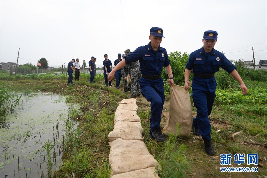 7月7日,吳興區(qū)消防救援大隊(duì)隊(duì)員在織里鎮(zhèn)曹家籪村幫助村民加固防洪堤。近日,位于浙江北部的湖州市遭遇多輪降雨,東部平原河網(wǎng)普遍超警戒水位,水庫山塘高位運(yùn)行。7月5日12時30分,湖州市人民政府防汛防旱指揮部將防汛應(yīng)急響應(yīng)提升至Ⅲ級,要求各地密切監(jiān)測汛情,切實(shí)做好各項(xiàng)防范工作,確保安全度汛。新華社記者黃宗治攝