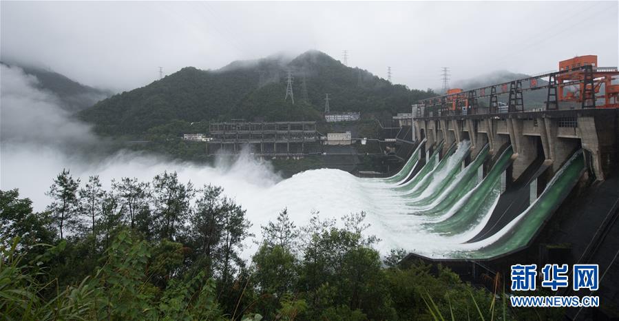 7月7日下午開啟7孔泄洪的新安江水庫。受持續(xù)降水影響,浙江新安江水庫水位持續(xù)快速上升。繼當日10時開啟3孔、12時開啟5孔泄洪后,新安江水庫于16時增加到7孔泄洪。新安江水庫是華東地區(qū)最大的水庫,在錢塘江流域的防洪度汛中起到關(guān)鍵作用。新華社記者翁忻旸攝