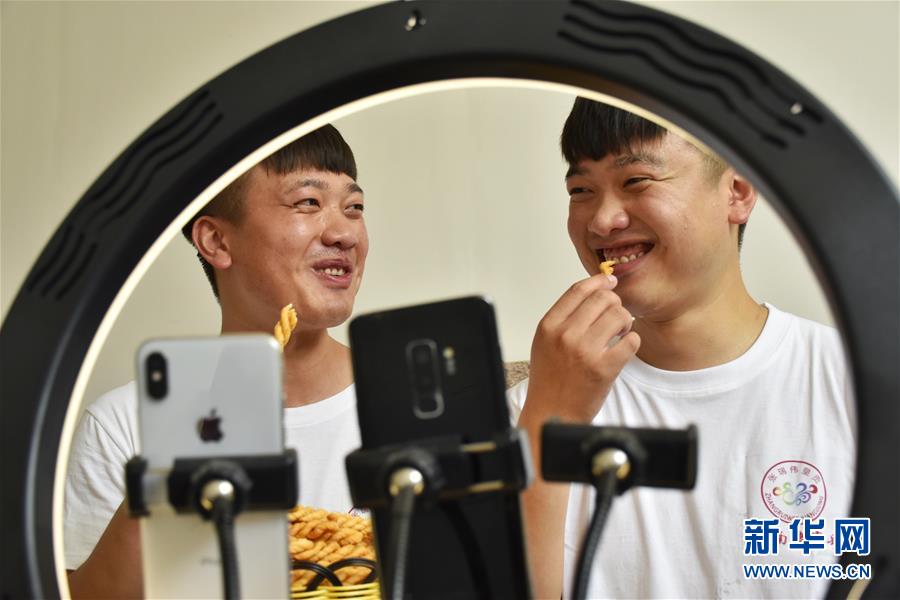 7月8日,張亞博(左)、張亞釗兄弟在直播帶貨。新華社記者韓朝陽(yáng)攝