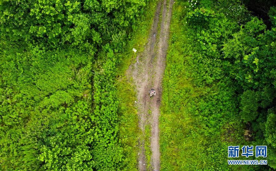 7月8日,董紅雨在迎春林業(yè)局有限公司施業(yè)區(qū)內進行野生東北虎信息搜集和巡護工作(無人機照片)。