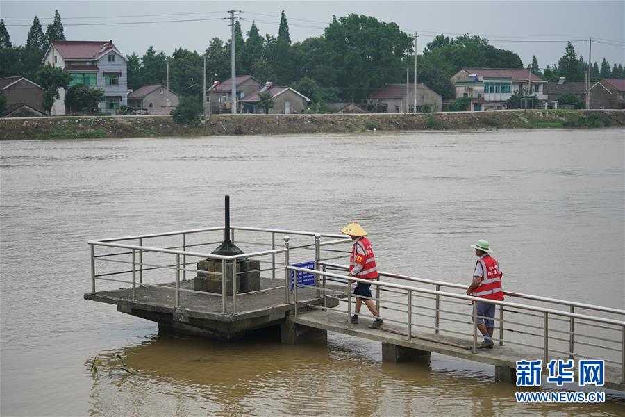 7月9日,在高淳區(qū)陽江鎮(zhèn)永豐圩,巡堤員在值守點(diǎn)值守。新華社記者季春鵬攝