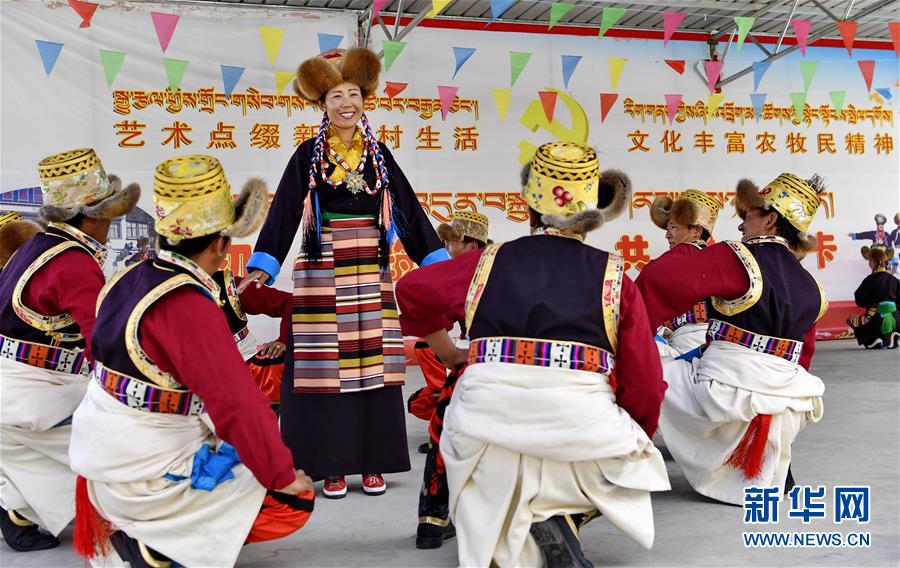 山南市扎囊縣桑耶鎮(zhèn)乃卡村文藝演出隊為村民表演節(jié)目(7月7日攝)。新華社記者張汝鋒攝